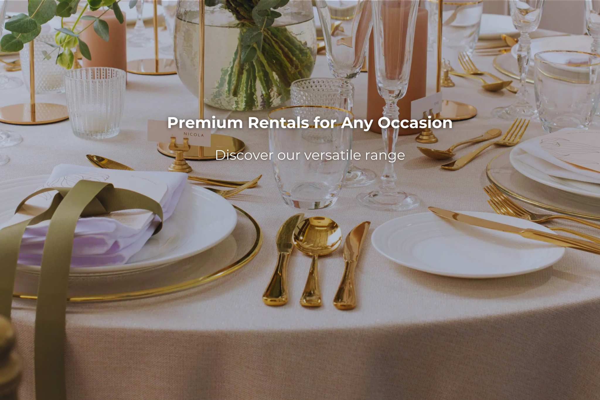 With a customer-centric approach at the heart of our business, we strive to understand our clients’ unique needs and preferences. Our team of dedicated professionals is committed to supporting our customers in their goals for seamless event planning and execution. From elegant tableware to a wide selection of furniture, we offer a wide range of equipment to suit any occasion.