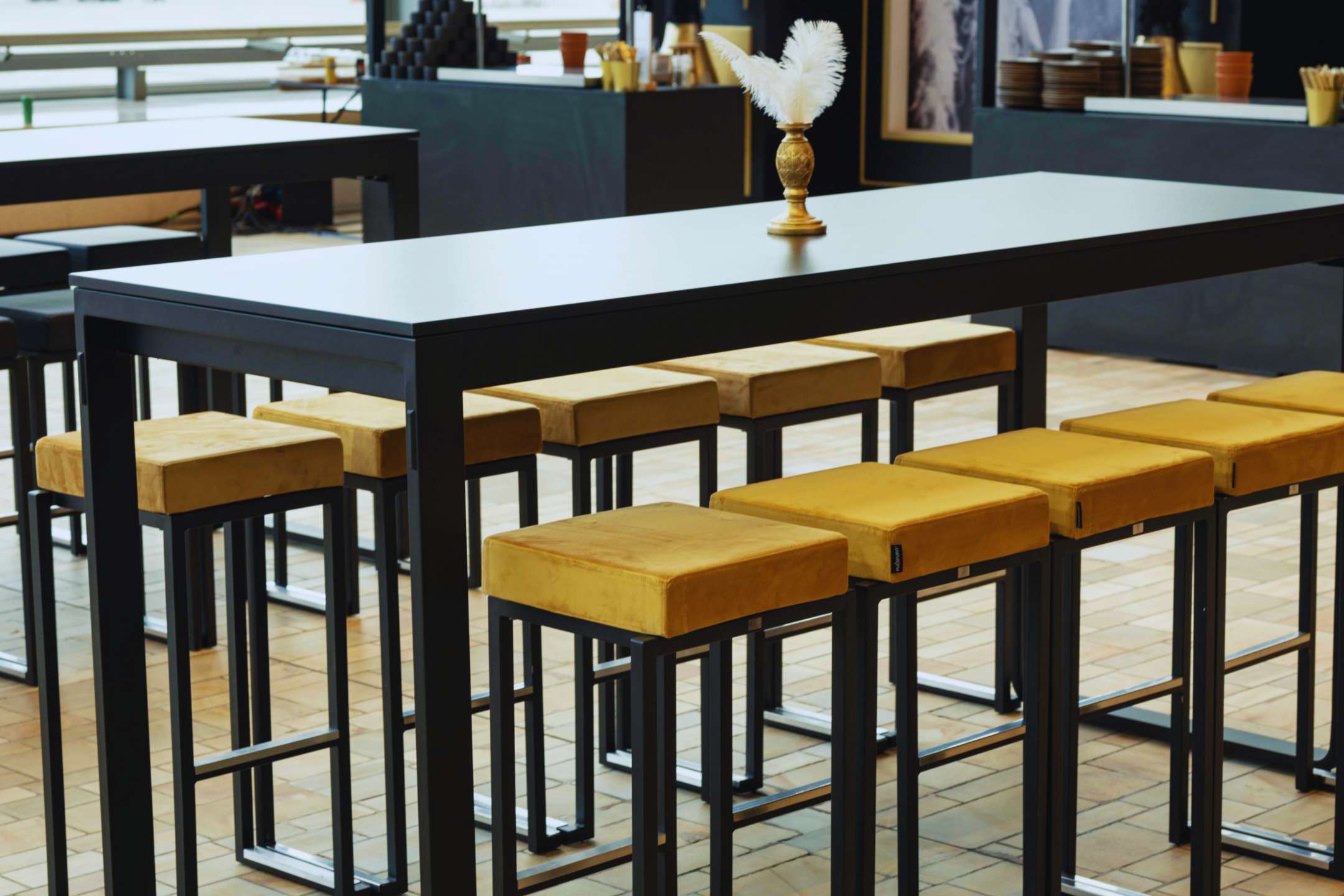 • Elegant velvet seating. A stylish choice for bar tables, receptions and modern event spaces.